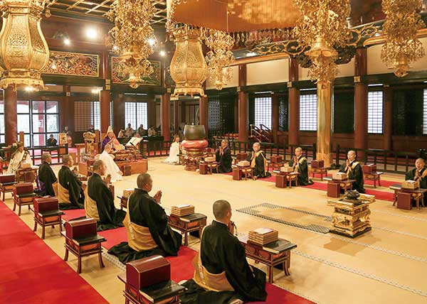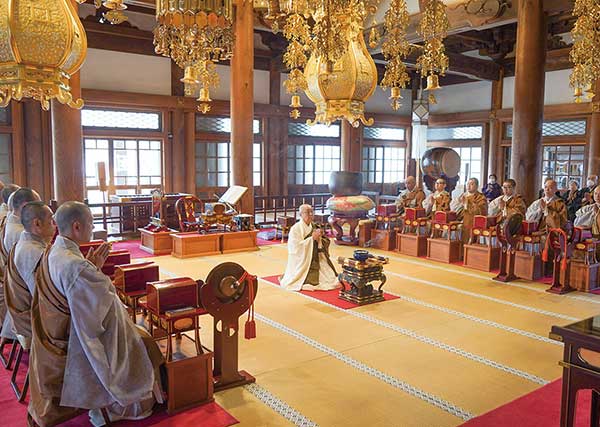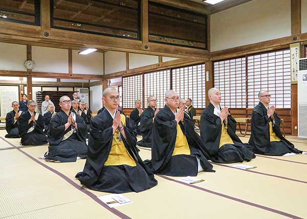 午後1時より本堂に於いて、豊田布教部長導師のもと、青山法務部長、池上庶務部長が副導師として列座し、在院生、僧道実修生が出仕して、釈尊涅槃会が執り行われた。