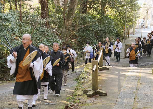 加行僧は午前9時より、身延山の行脚隊に先導され門前町を行列して、祖廟へと向かった。祖廟拝殿に於いて、法味を言上した後、成満を奉告した。