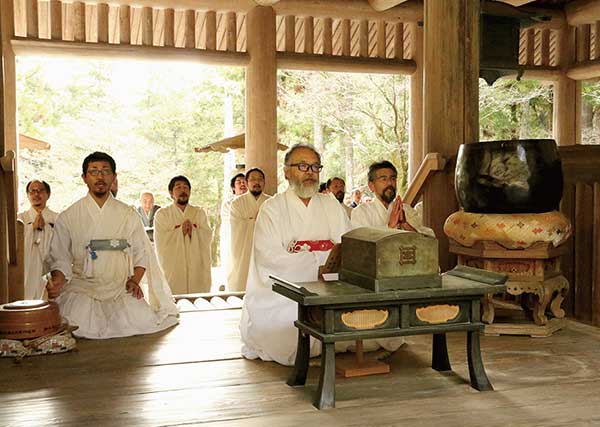 読誦会終了後には、信行道場講堂に於いて、参集した信徒らに対し、大衆法楽加持が修された。