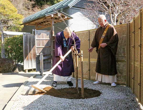 持田日勇法主猊下に御臨場賜り、お手植えが行われた。