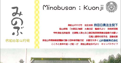 法華経の解説・祖山での出来事などをご紹介する月刊教報「みのぶ」誌を数量限定で無料頒布しております。