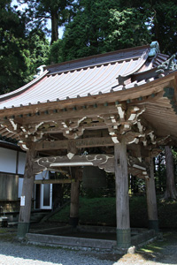 六浦平次郎入道の建立で、天和年間31世日脱上人代に本堂域から移転されました。仁王像は31世日脱上人の開眼です。門の前の石段は昭和45年、佐藤玄守別当代に造営されました。